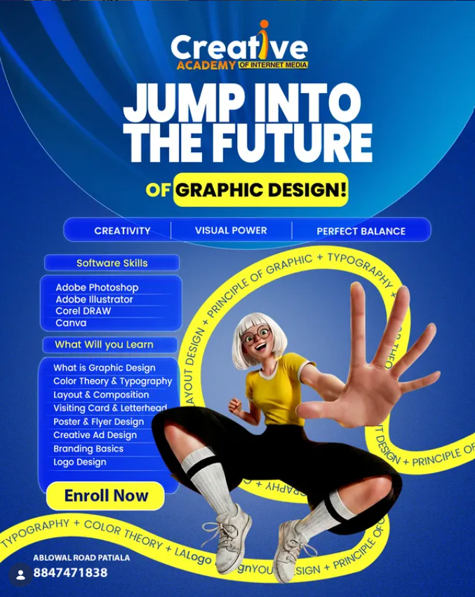 Creative Academy of Internet Media provides the most comprehensive Adobe Photoshop training in Patiala, focusing on industry-standard design techniques and practical applications. It teaches you how to edit photos, develop graphics, and retouch photos like an expert, all in a step-by-step way.